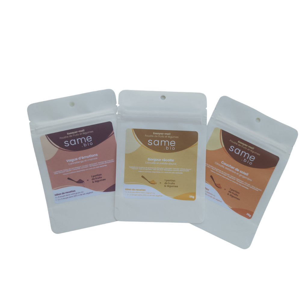 Commandez un échantillon parmi nos trois savoureuses poudres nutritives.